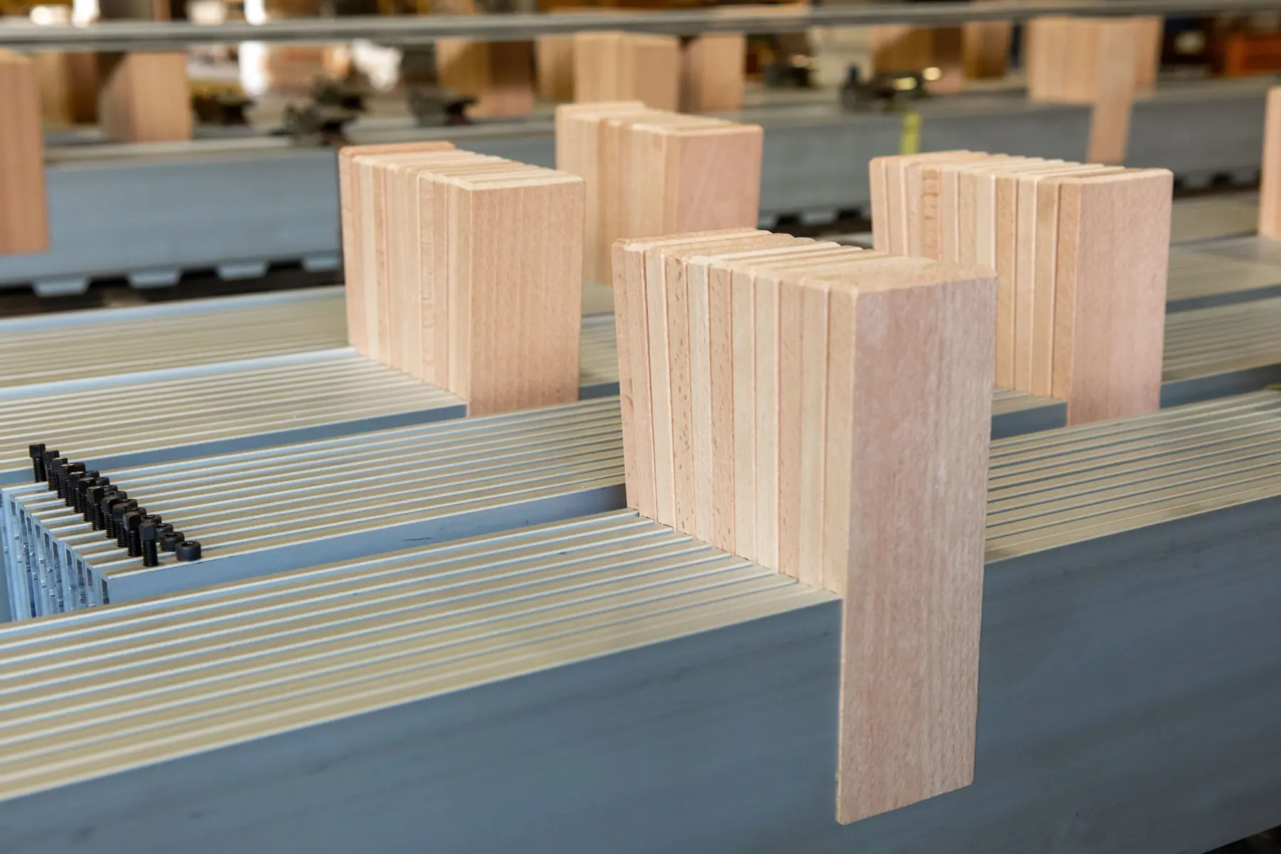 The heald frame is an essential part of the frame: we use extruded aluminum profiles and quality components made in Italy
